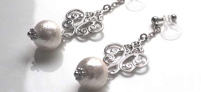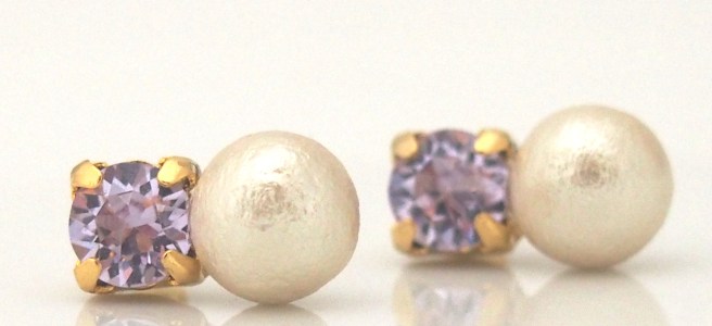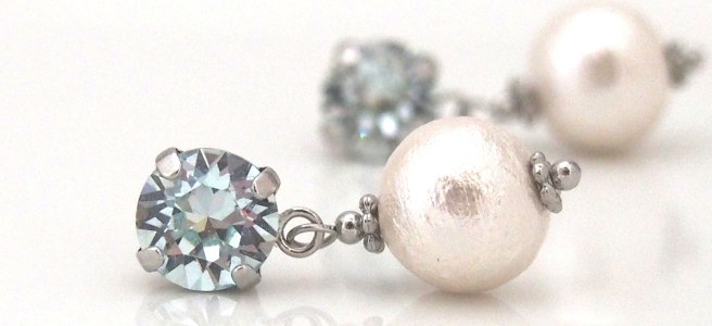 A few weeks ago, it was so freezing in Japan. When I walked around downtown in Osaka, I thought I was going to be frozen for the coldness. But air was clear and fresh, and I felt good. All the sudden, I wanted to create jewelry, an image of winter such that icy and snowy winter. That’s why these earrings are created. The light blue Swarovski crystals are an image of clear fresh air and white cotton pearls are snow. I thought it would be nice wearing these earrings for dating and some elegant occasions during winter time.