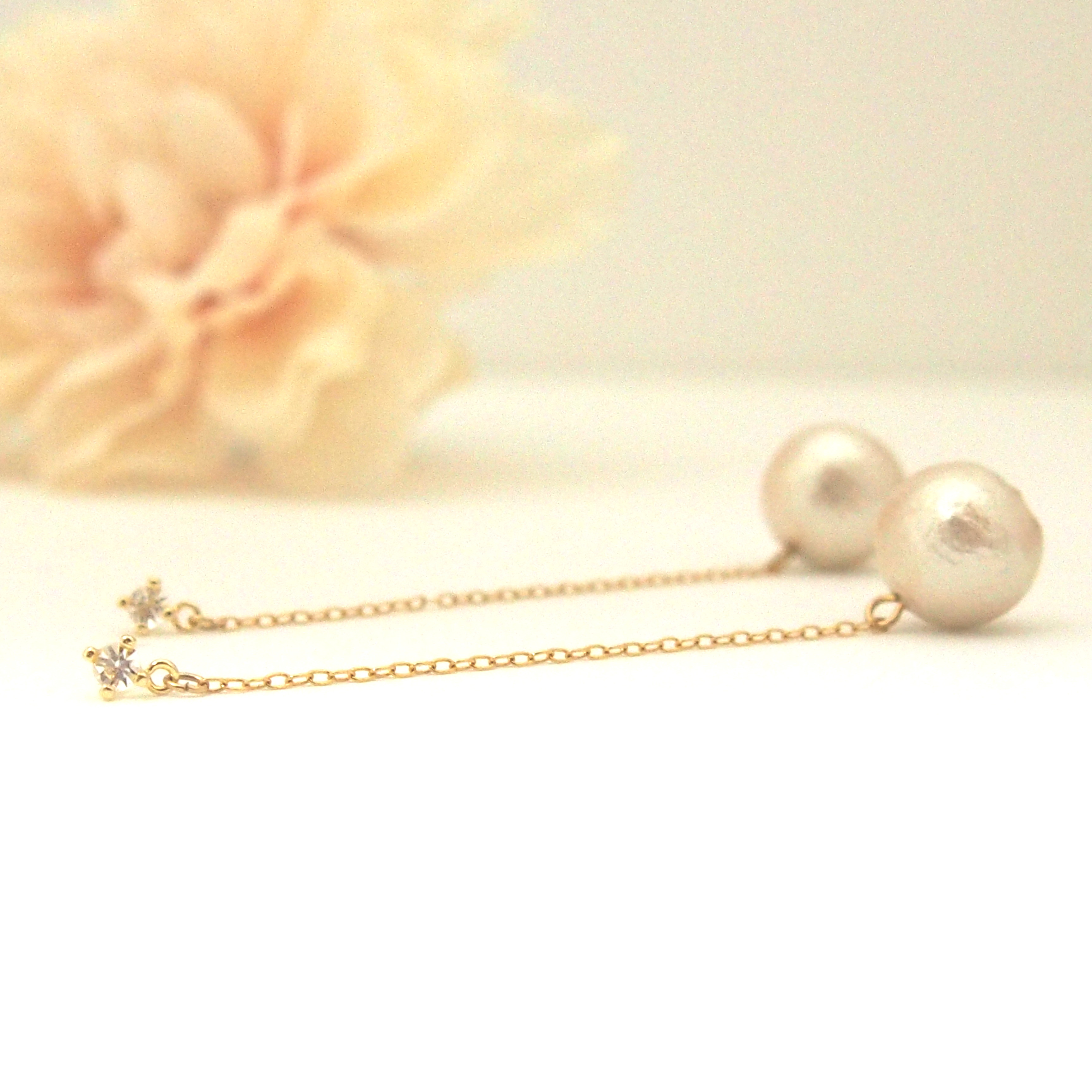 Recently cotton pearls jewelries are one of the popular items in Japan. Why don’t you attract his attention with these unique and classy earrings?