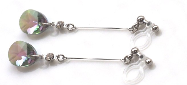 Today, I would like to introduce the ideal autumn and winter jewelries. They are Swarovski crystal and rich gray cotton pearl invisible clip on earrings. I released several cotton pearl earrings but not so many about gray and black pearl ones. Please take a look at these lustrous pearls. They change the color from different angles: they are not simple gray, they have purplish shine on their surface. They seem rich south sea pearls. The combination of sparkly crystal and rich taste of pearls are gorgeous. They make you shine even in winter gloomy weather!